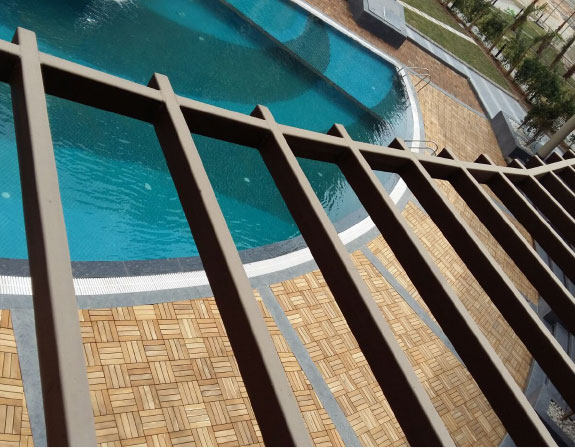 Zyrex Outdoor Wooden Flooring comes backed with a polypropylene patented grid known for its toughness. The grid allows for lifelong drainage of water without the base getting spoilt. This unique system of drainage does not allow fungi and moss to grow on it. Polypropylene is highly resistant to organic chemicals as well.